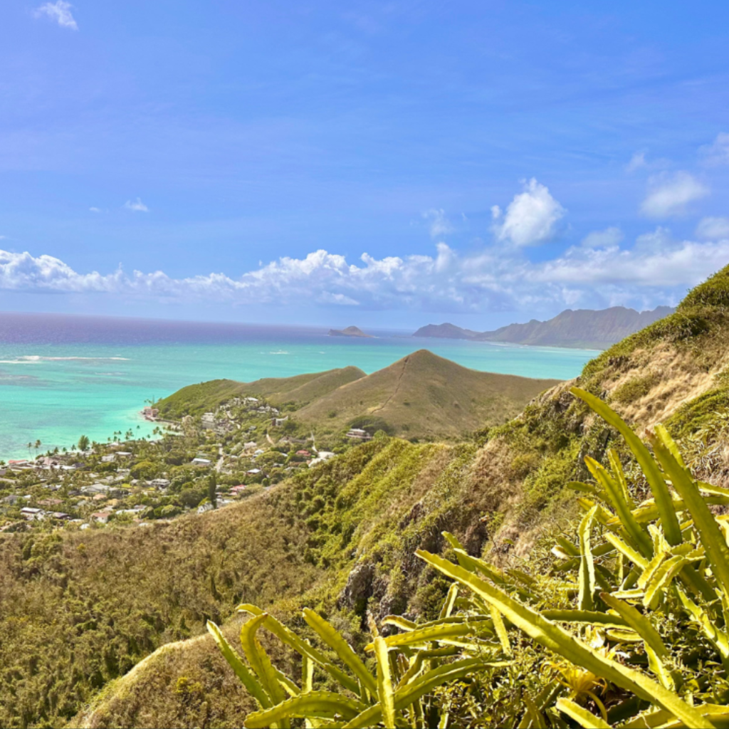 This is a short trail offering a 360° view of the turquoise ocean and lush mountains, with a touch of WWII history. If you can only choose one hike on Oʻahu, this is the must-do.