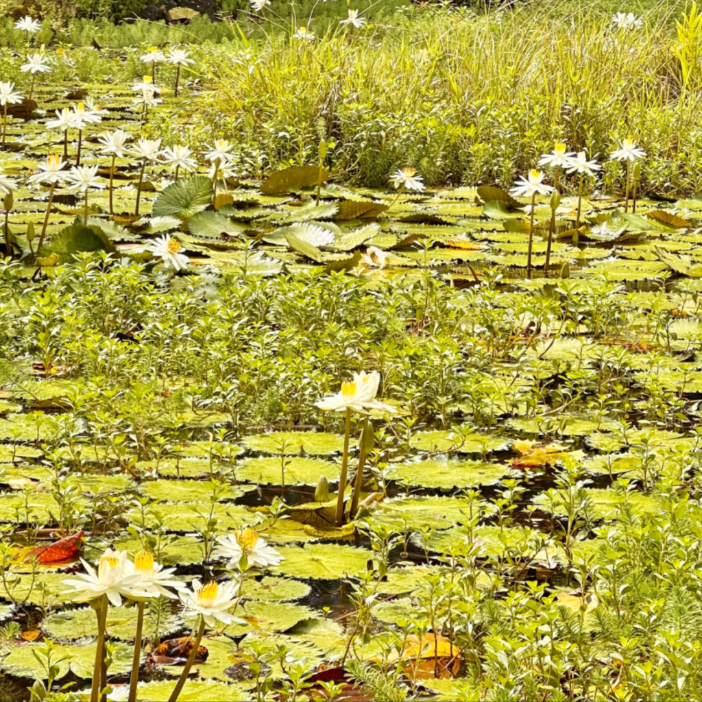 The journey to the falls feels like stepping into a living tropical garden — a gently paved, wavy trail less than a mile long, winding through lush greenery and colourful wildflowers.